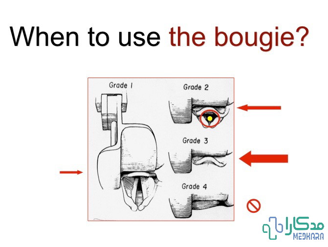 - در هنگام ورود گاید بوژی، از اعمال فشار بیش از حد خودداری کنید تا به بافت حلق یا نای آسیب نرسد.