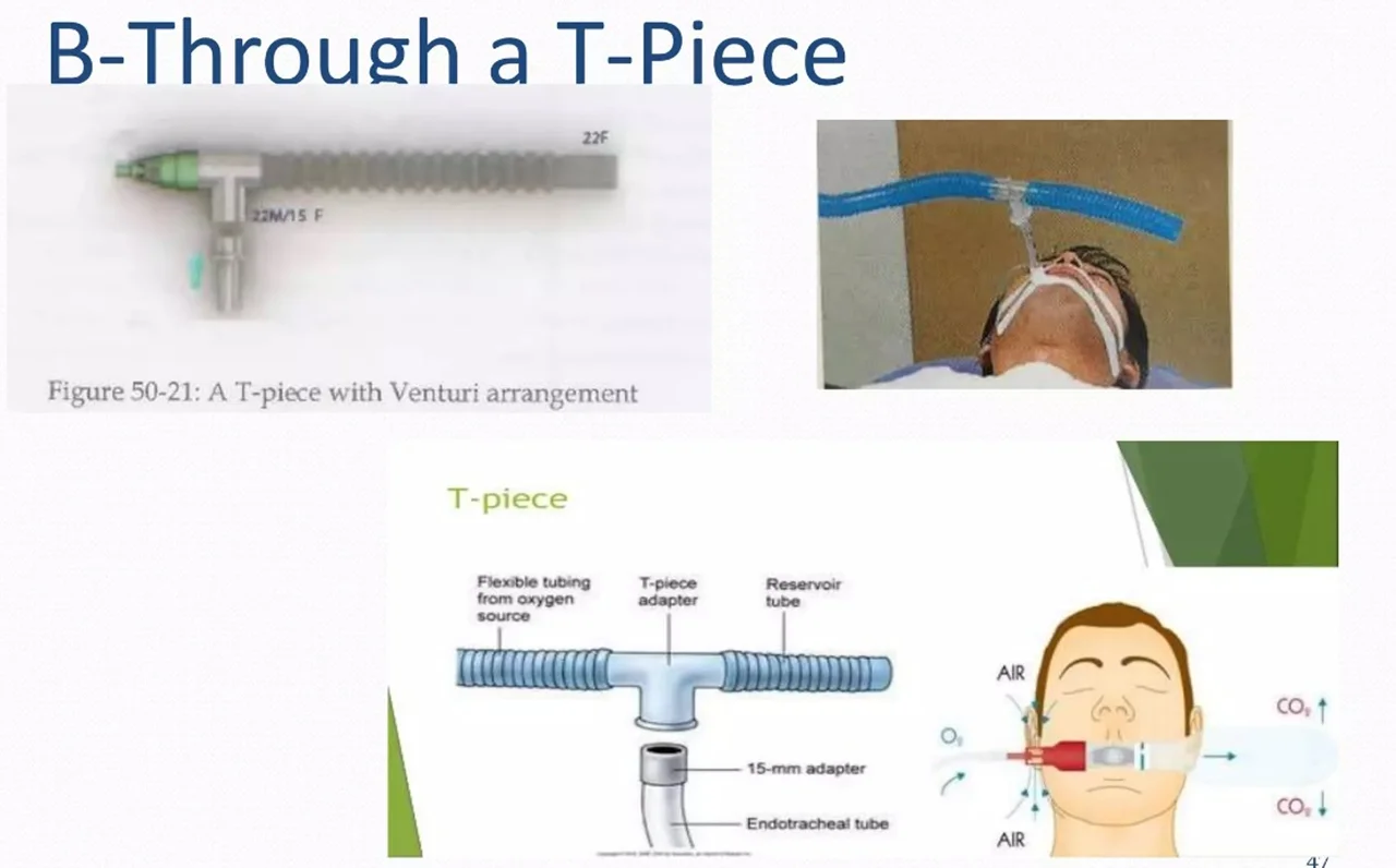 تی پیس ونچوری روی لوله تراشه یا لوله تراکئوستومی قرار می گیرد. و از طریق آن اکسیژن با جریان بالا و درصد مشخص به بیمار داده می شود . از این وسیله در طی فرآیند جدا کردن بیمار از دستگاه تنفس مصنوعی می توان استفاده کرد. قیمت تی پیس ونچوری با درصد های مختلف مناسب را در مدکارا می توانید تهیه نمایید. این ابزار می تواند علاوه بر تجویز اکسیژن توسط مقاومتی که در سر راه بازدم ایجاد می کند سبب تولید حدود 5 سانتی متر آب PEEP شود و از افزایش PACO2 جلوگیری نماید . میزان جریان مخلوط هوا و اکسیژن درون T-piece باید 5.2 برایر حجم دقیقه ای باشد .